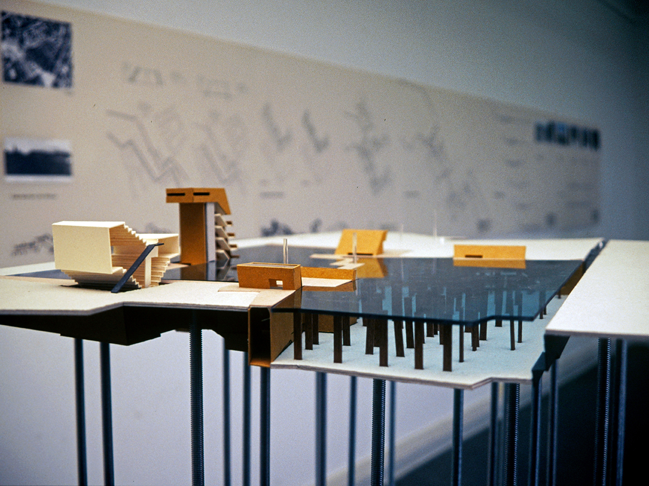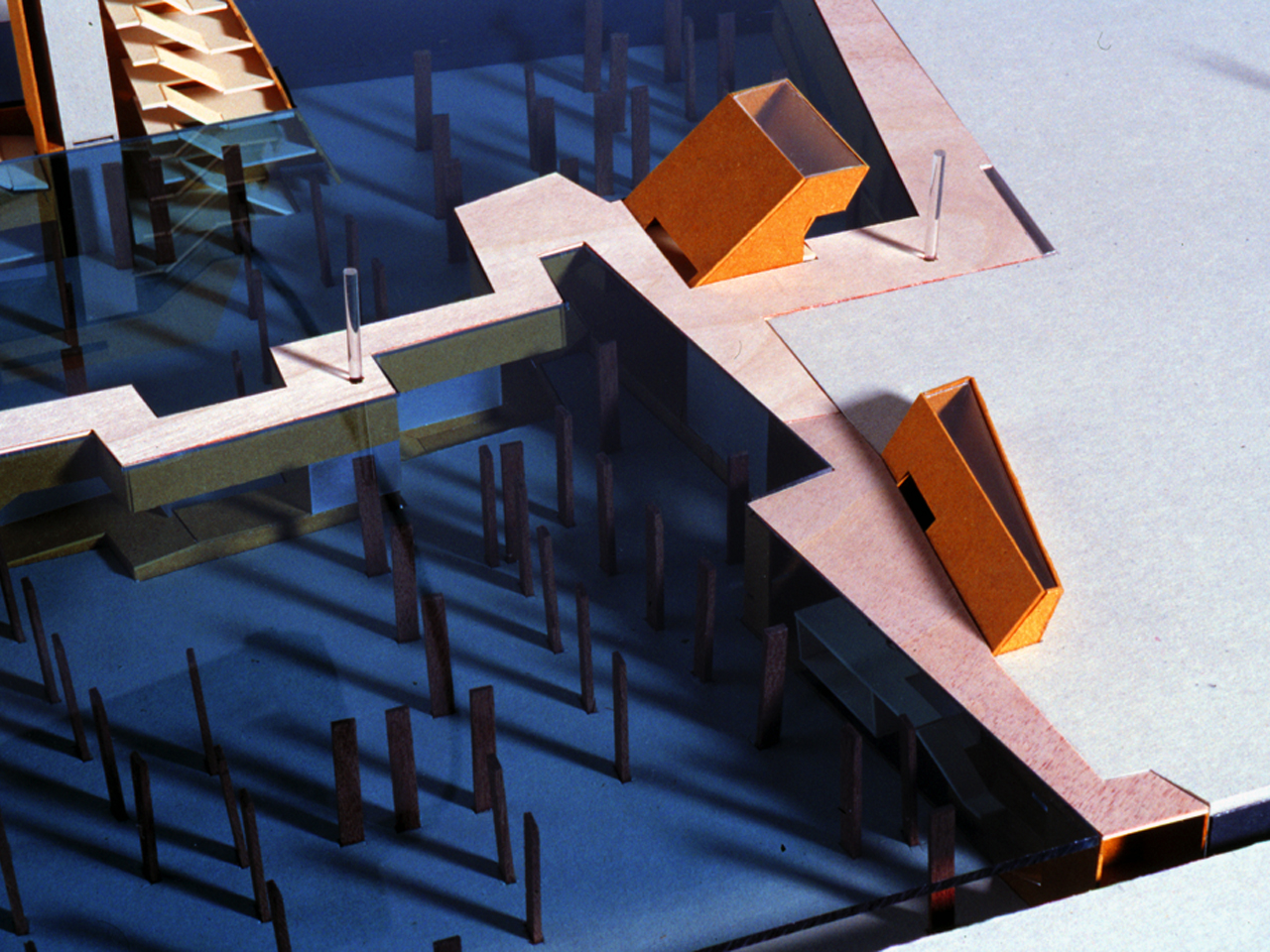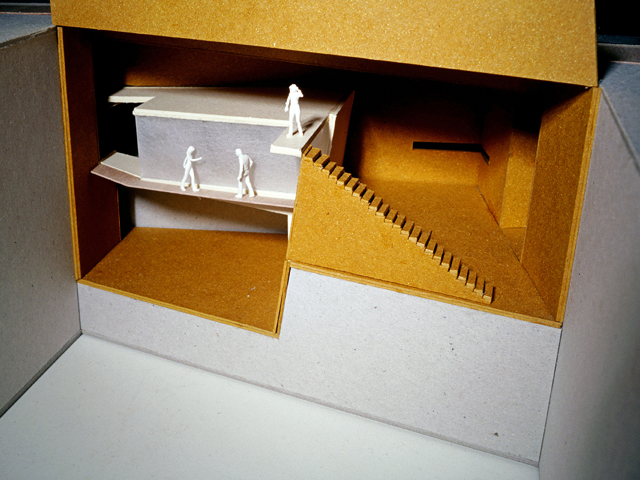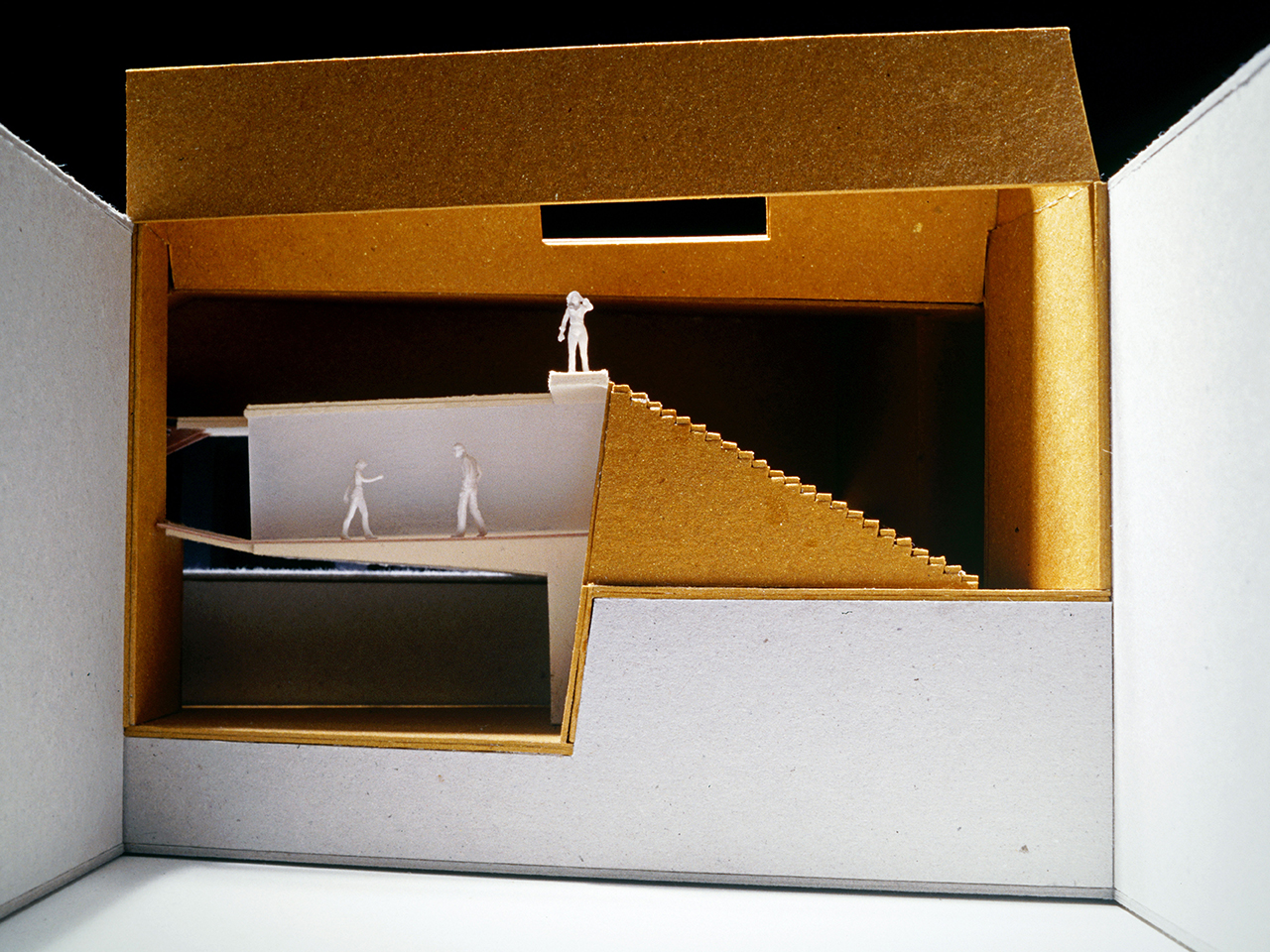 The laboratory of boundaries projects an interdisciplinary scientific work on a socio-spatial theory of boundaries, integrated into a section of the former death strip of the Berlin wall – the manifestation of boundary par excellence. Spatially, the laboratory of boundaries transforms an inner-city section of the wall strip into a place where the non-space of the former barrier becomes a publicly accessible plateau – raised to a height of 1.4 metres. It is bordered by two walkable trenches in the ground that mark the course of both former walls while also providing the entrance to the boundary space. The boundary space is metamorphosed and connected to new experiences in which the former separation remains noticeable. Below this plateau, which is partially formed by a water-covered glass roof, a landscape of partly sculptural and partly open spaces develops, allowing boundaries to be experienced as intermediary spaces via transitions and intermediate zones. The working areas are situated in the open spaces below the glass roof while the maze-like structures are open for visitors. Here the research work results are to be publicly presented. A number of special situations are included in these structures: the former watchtower contained as a hollow mould inside a new slightly larger look-out, a sub-terrestrial mirror-corridor, light-columns which connect interior and exterior space in the places of the former floodlight masts, an auditorium traversing the borderline. The question of the structure of boundaries is universally significant and therefore always current. The history of the wall provides the occasion to develop an interdisciplinary socio-spatial theory of boundaries, at a time when spatial boundaries seem to be losing their significance.