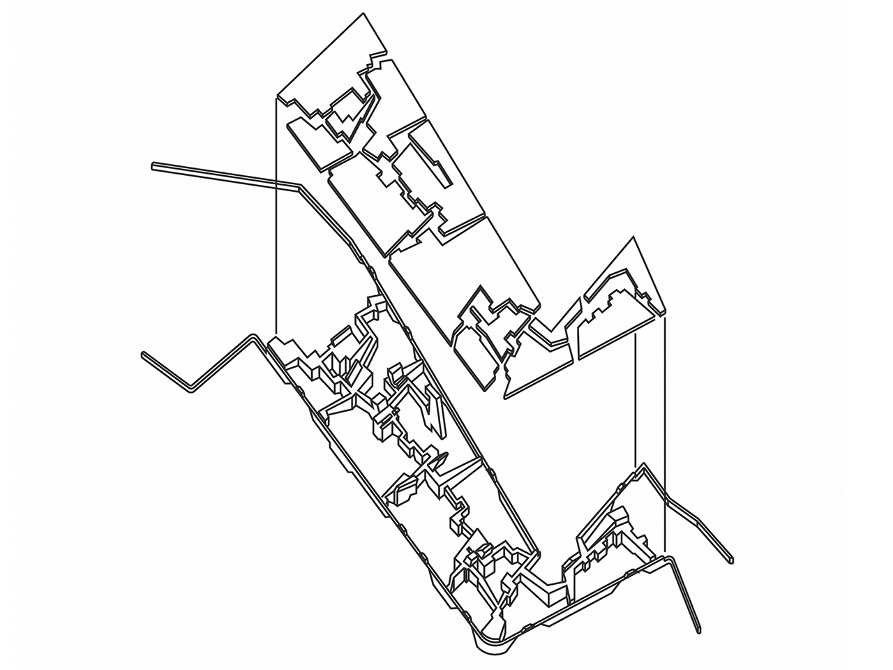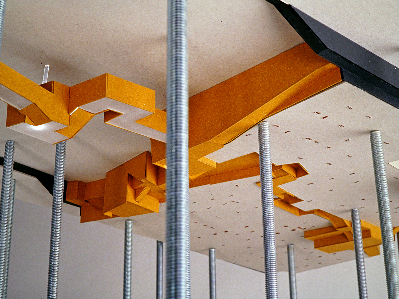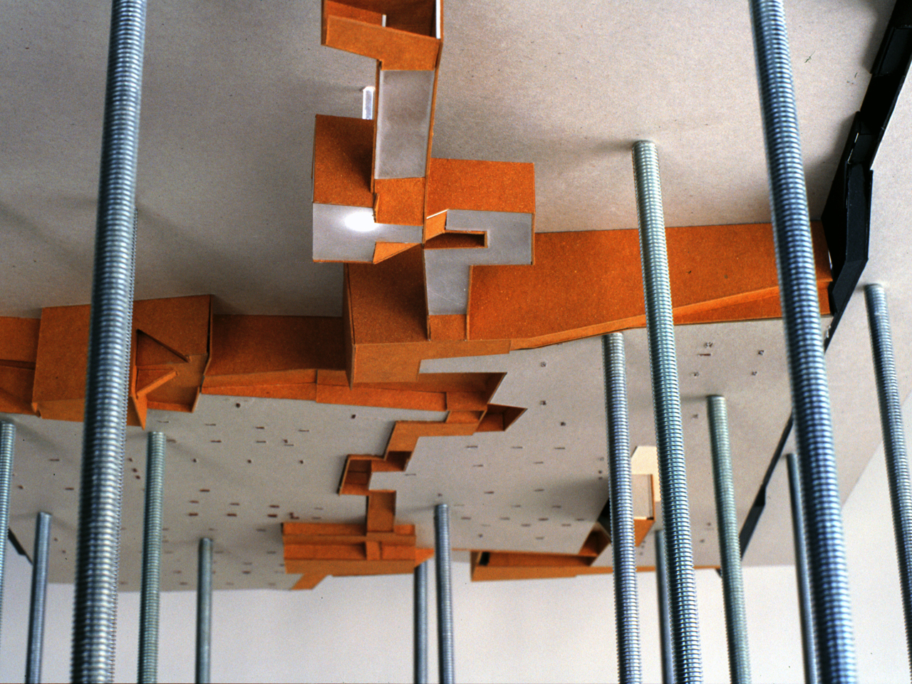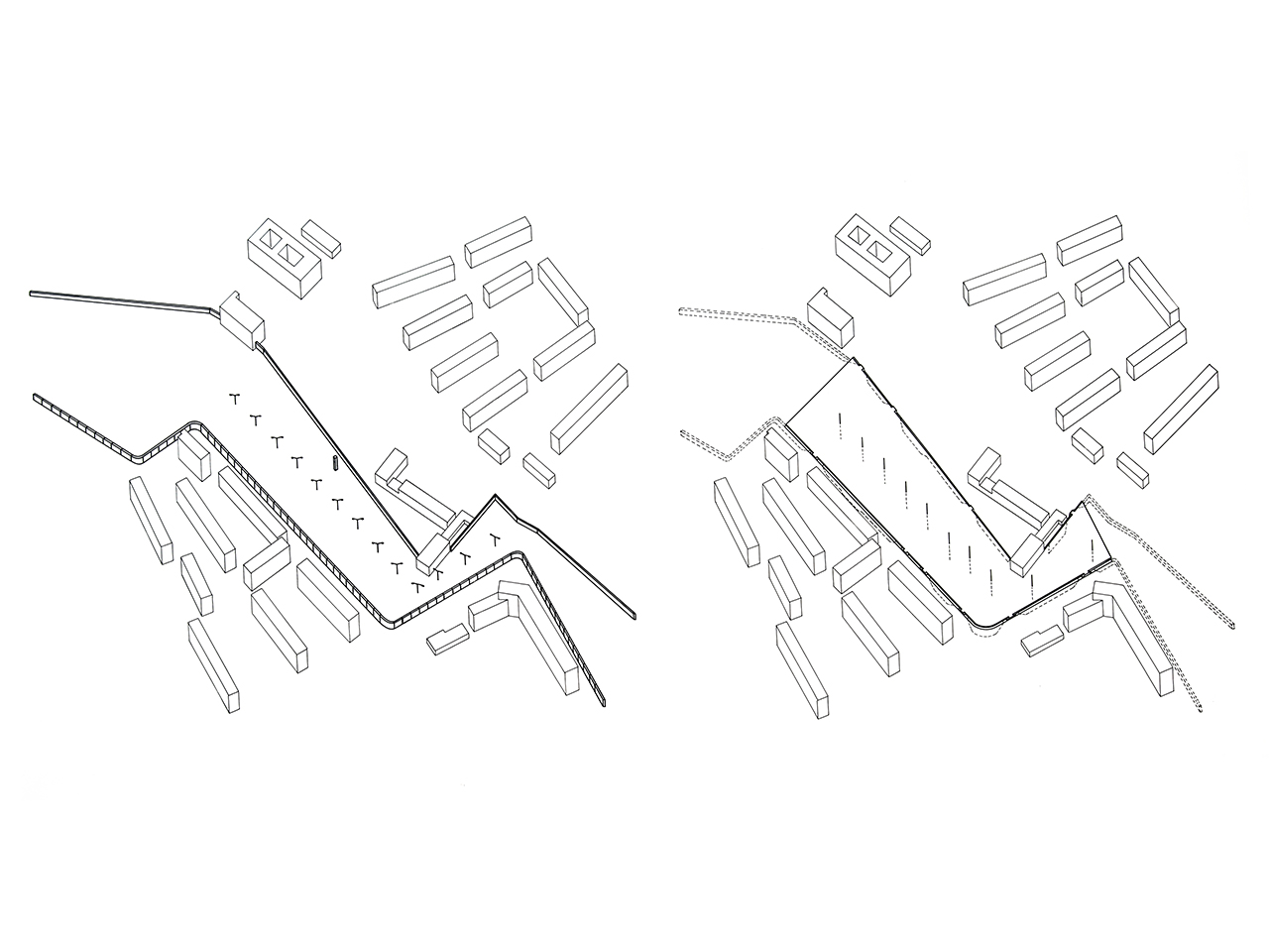 The laboratory of boundaries projects an interdisciplinary scientific work on a socio-spatial theory of boundaries, integrated into a section of the former death strip of the Berlin wall – the manifestation of boundary par excellence. Spatially, the laboratory of boundaries transforms an inner-city section of the wall strip into a place where the non-space of the former barrier becomes a publicly accessible plateau – raised to a height of 1.4 metres. It is bordered by two walkable trenches in the ground that mark the course of both former walls while also providing the entrance to the boundary space. The boundary space is metamorphosed and connected to new experiences in which the former separation remains noticeable. Below this plateau, which is partially formed by a water-covered glass roof, a landscape of partly sculptural and partly open spaces develops, allowing boundaries to be experienced as intermediary spaces via transitions and intermediate zones. The working areas are situated in the open spaces below the glass roof while the maze-like structures are open for visitors. Here the research work results are to be publicly presented. A number of special situations are included in these structures: the former watchtower contained as a hollow mould inside a new slightly larger look-out, a sub-terrestrial mirror-corridor, light-columns which connect interior and exterior space in the places of the former floodlight masts, an auditorium traversing the borderline. The question of the structure of boundaries is universally significant and therefore always current. The history of the wall provides the occasion to develop an interdisciplinary socio-spatial theory of boundaries, at a time when spatial boundaries seem to be losing their significance.