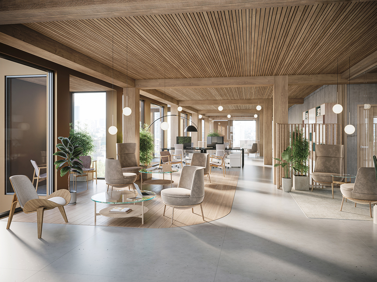 Der Standort bietet ein breites Spektrum an Freizeit- und Kulturangeboten in einer grünen, lebendigen Nachbarschaft, in der man gerne arbeitet und lebt. Die Infrastruktur der Gebäude wird ergänzt durch ein Café im Erdgeschoss, großzügige Foyers und innenliegende Höfe, die Licht in die unteren Etagen bringen. Dachterrassen auf beiden Gebäuden laden überdies zum Entspannen und für Community-Angebote ein.