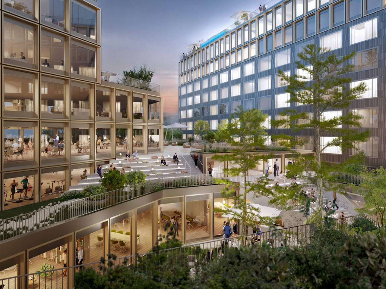 Auf den Terrassen- und Dachflächen des Hauses entstehen für die Nutzer des Bürokomplexes und die Hotelgäste wertvolle, vielfältig nutzbare Aufenthaltsorte mit einem breiten Angebot an unterschiedlichsten Aktivitäten – zum Arbeiten, für Bewegung, Sport und Spiel, für gastronomische Angebote sowie zum kontemplativen und erholsamen Rückzug im Freien.
